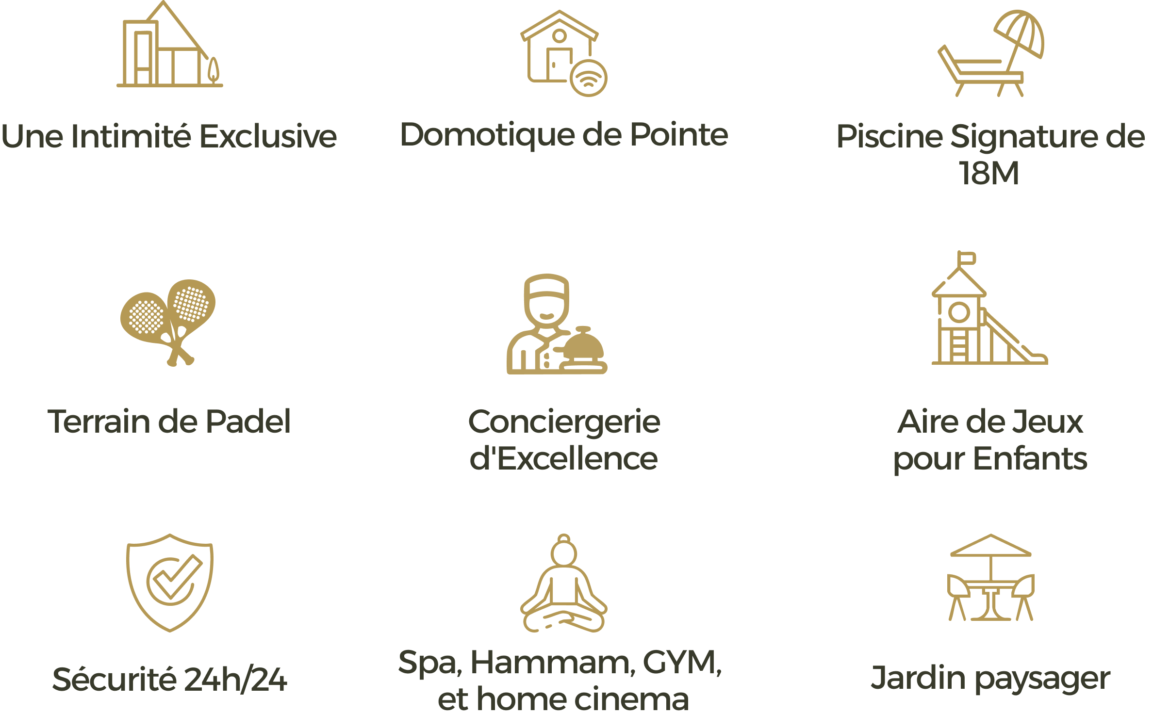Ce domaine privé exclusif se compose de seulement 8 villas spacieuses, chacune nichée dans son propre écrin de verdure allant de 1 055 à 1 255 m².