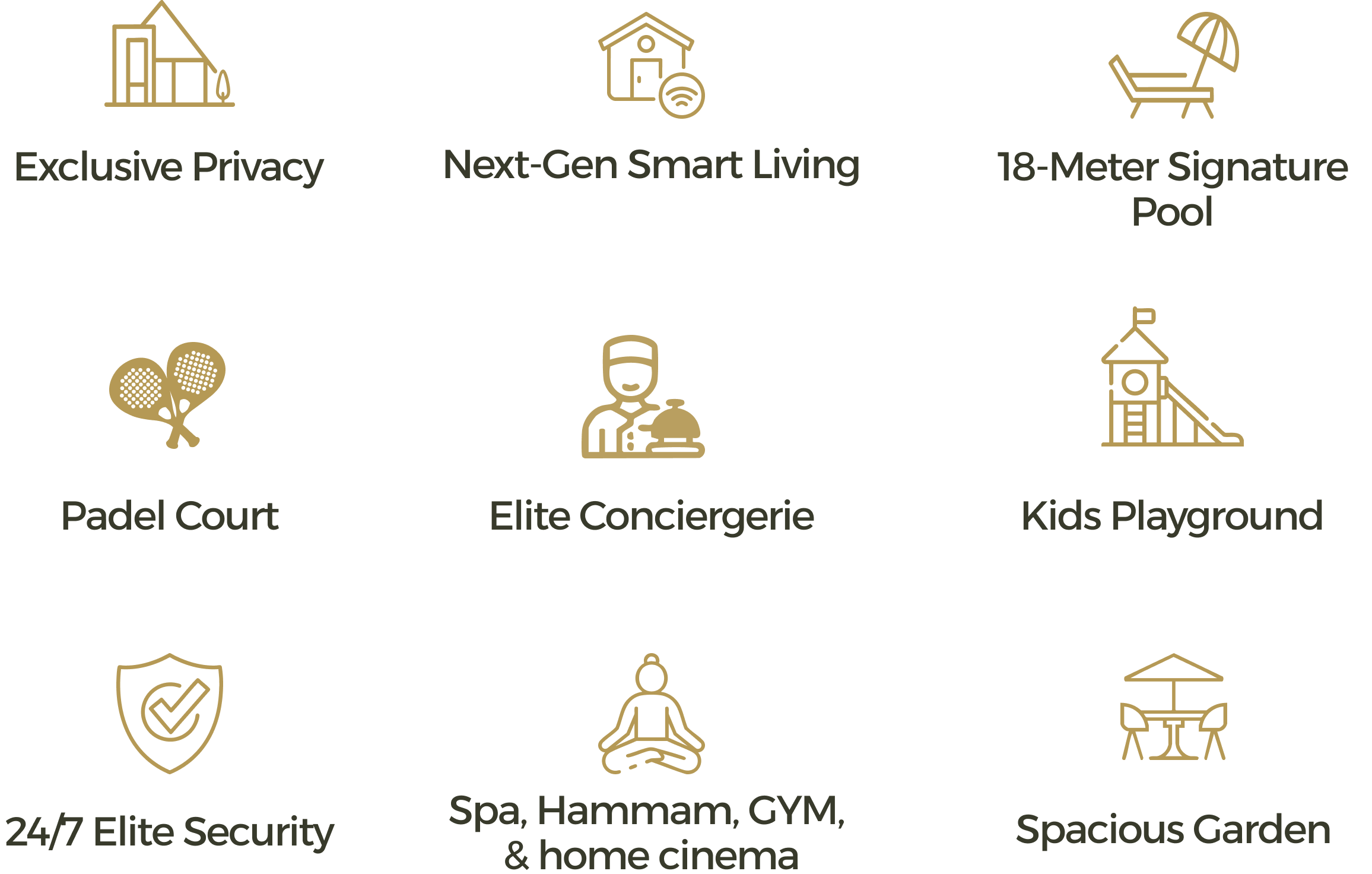 This exclusive private domain features just 8 spacious villas, each set within its own lush grounds ranging from 1,055 to 1,255 m².